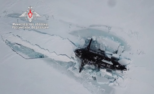 Một tàu ngầm hạt nhân Nga phá lớp băng ở Bắc Cực. Ảnh: Russian Defense Ministry.