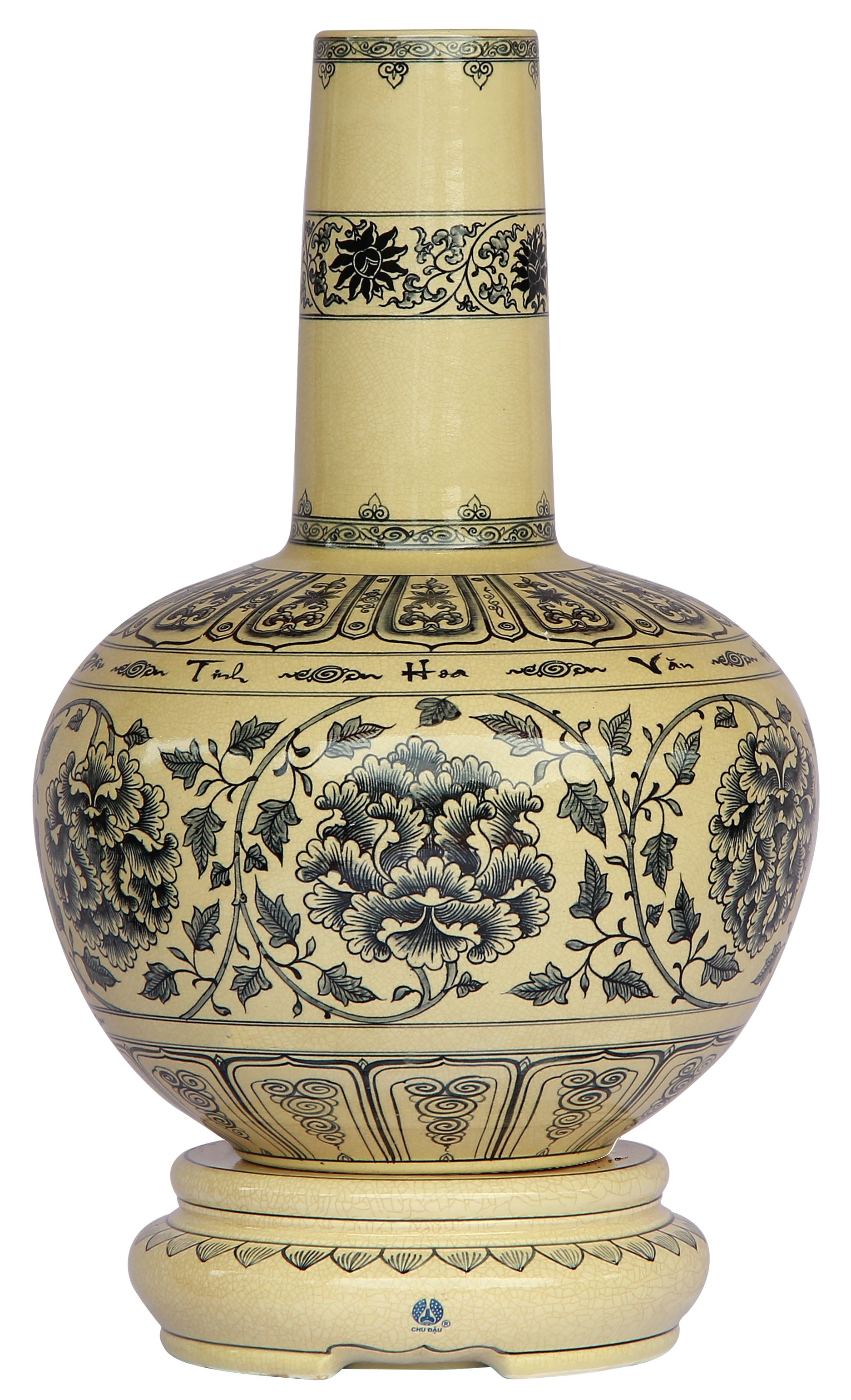 Bình Hoa lam: Mang dáng tròn tượng trưng cho trời, hình trụ thẳng mang dáng trực tượng trưng cho người quang minh chính đại là trụ cột trong gia đình và xã hội. Lai lịch gốm Chu Đậu được tìm thấy từ bút ký lưu trên bình phát hiện năm 1980 tại Viện bảo tàng Topaki Sarray, Istabul, Thổ Nhĩ Kỳ.