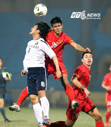 Trước một dàn cầu thủ xứ Hàn cao to hơn hẳn một cái đầu, nhưng sức bền, sức bật thì Gia Từ chẳng thua kém chút nào. Trung vệ người Hà Tĩnh thi đấu vô cùng chững chạc và có mặt ở hầu hết các điểm nóng trong vòng cấm đội nhà.