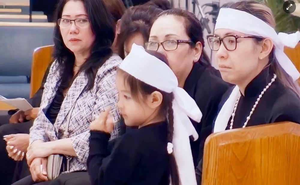 Trong đám tang, bé Mèo - con gái 4 tuổi của Đức Tiến dường như chưa nhận thức đầy đủ về những gì đang diễn ra. Đôi mắt ngây thơ của bé càng khiến nhiều người xót xa.