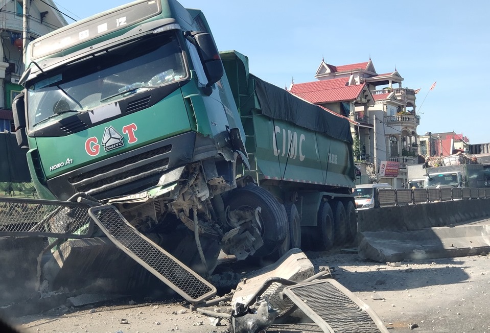 Vào thời gian trên, xe tải BKS 37C - 318.13 đang chạy trên Quốc lộ 1A hướng Vinh - Hà Nội, do tránh xe máy nên đâm vào dải phân cách giữa đường.