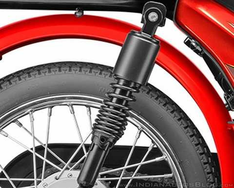 Ngoài ra, TVS XL 100 còn có phuộc ống lồng trước, giảm xóc tay đòn đằng sau.Lực hãm của xe bắt nguồn từ phanh tang trống có kích thước 80 mm trước và 110 mm sau.