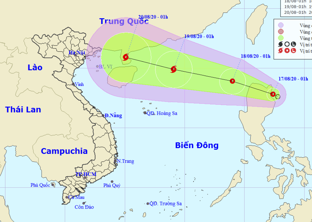 Đến 1h ngày 19/8, tâm bão ở cách quần đảo Hoàng Sa khoảng 400km về phía Bắc Đông Bắc. Sức gió mạnh nhất vùng gần tâm bão mạnh cấp 8 (60-75km/giờ), giật cấp 10.