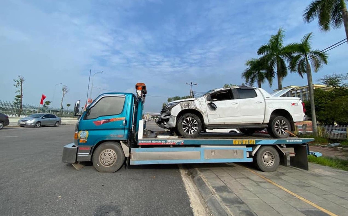 Xe bán tải gây tai nạn được đưa đi khỏi hiện trường. (Ảnh: Cứu hộ Bắc Giang).