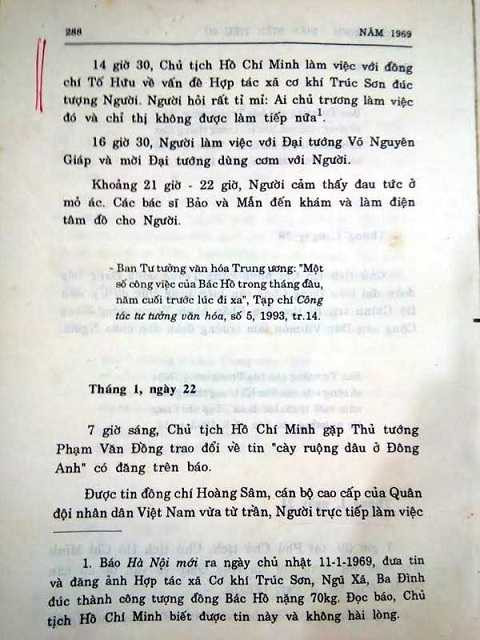 Tại trang 287-288, ghi chép hoạt động của Bác đầu năm 1969, có đoạn như sau: