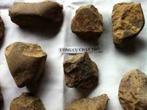 Công cụ chặt thô bằng đá được phát hiện tại hang Nà Mò, tỉnh Bắc Kạn.