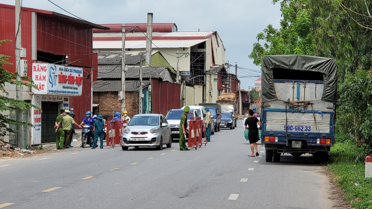 Chốt kiểm soát dịch COVID-19 nghiêm ngặt ở Phong Khê, giáp huyện Yên Phong với TP Bắc Ninh, tỉnh Bắc Ninh