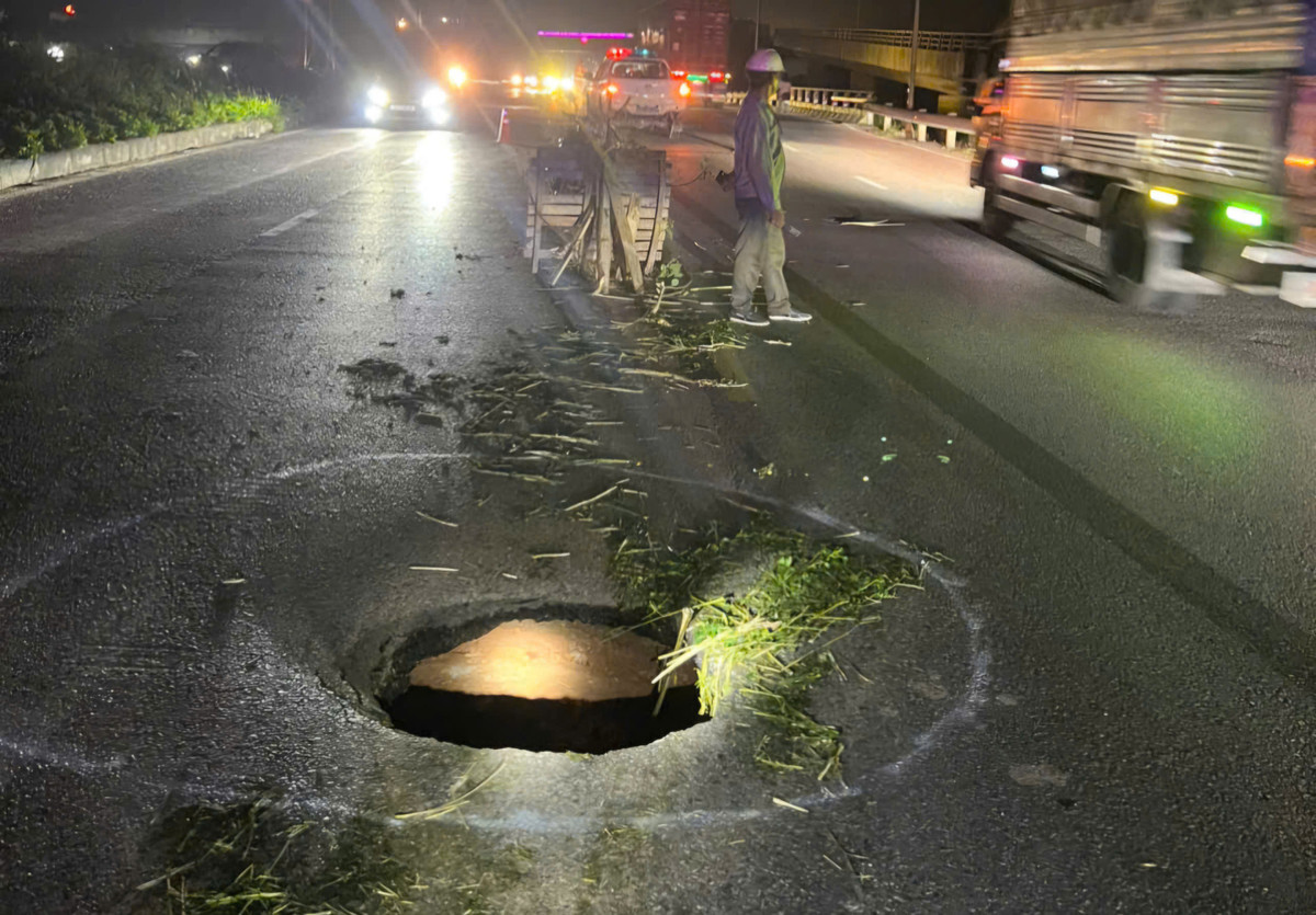 Sau khi phát hiện sự cố, lực lượng chức năng đã có mặt, bảo vệ hiện trường, phân luồng giao thông, hướng dẫn các phương tiện đi chậm lại tránh dư chấn làm sụt lún thêm.