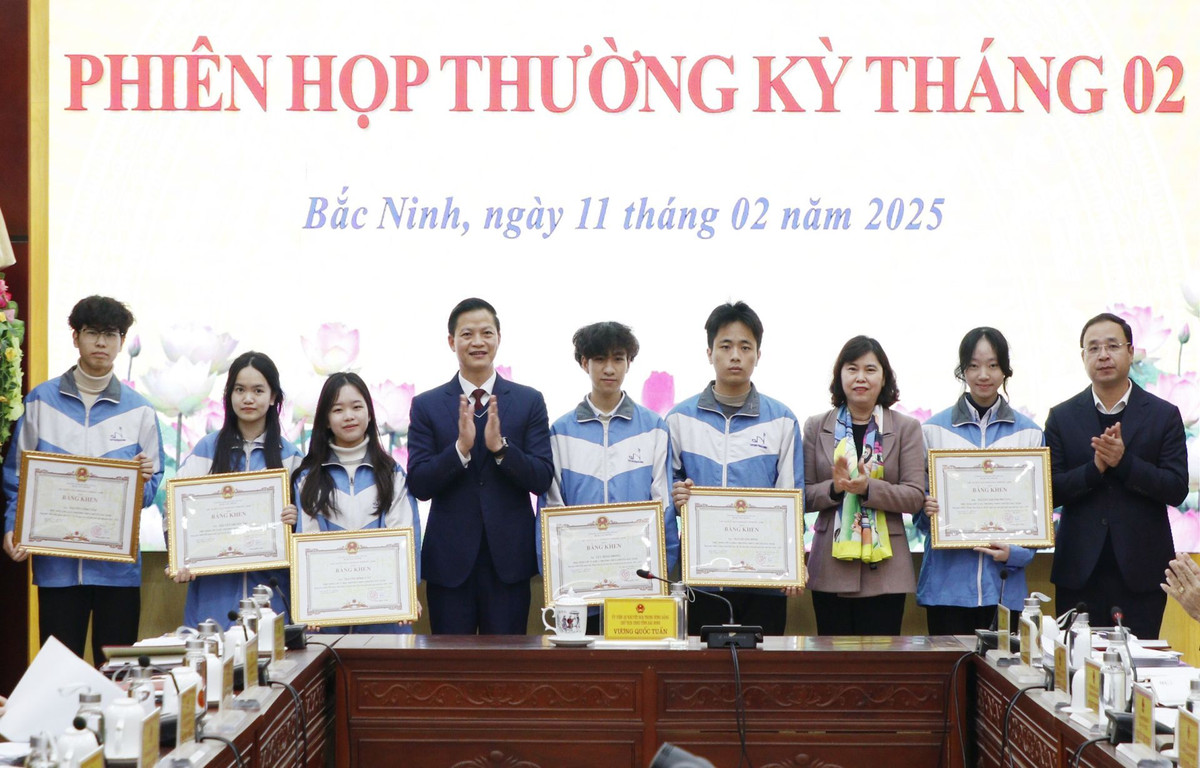 Sáng 11/2, tại phiên họp thường kỳ của UBND tỉnh Bắc Ninh, ông Vương Quốc Tuấn, Chủ tịch UBND tỉnh Bắc Ninh khen thưởng 12 em học sinh có thành tích xuất sắc, đoạt giải Nhất trong kỳ thi chọn học sinh giỏi quốc gia THPT năm học 2024 – 2025.