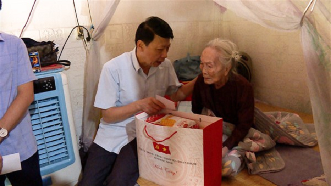 Phó Chủ tịch Thường trực UBND huyện Yên Phong Lưu Văn Mùi thăm và tặng quà người cao tuổi trên địa bàn huyện.