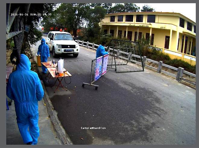 Để ứng phó với diễn biến nhanh của dịch bệnh COVID-19 tại thôn Nhiêu Đậu, xã Lâm Thao, huyện Lương Tài (nơi ở của ba bệnh nhân 1565, 1652 và 1702), tỉnh Bắc Ninh lắp đặt hệ thống camera giám sát an ninh tại các chốt kiểm soát dịch bệnh COVID-19 ở khu vực này.