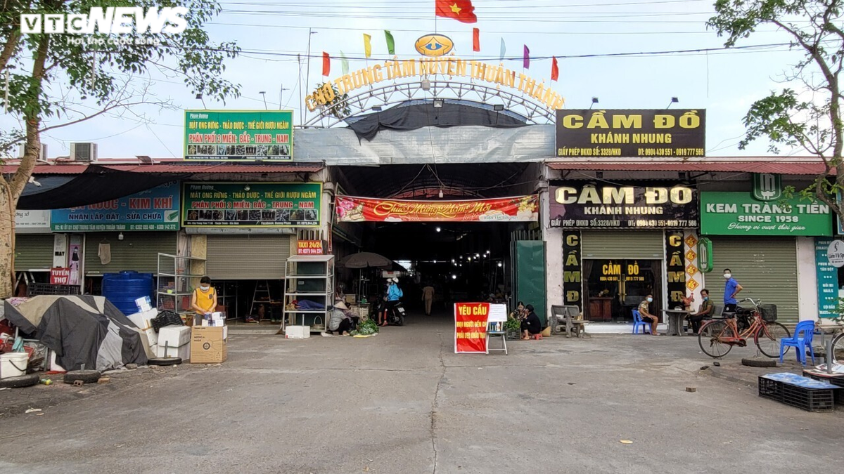 Chợ trung tâm huyện Thuận Thành vắng lặng do dịch COVID-19.