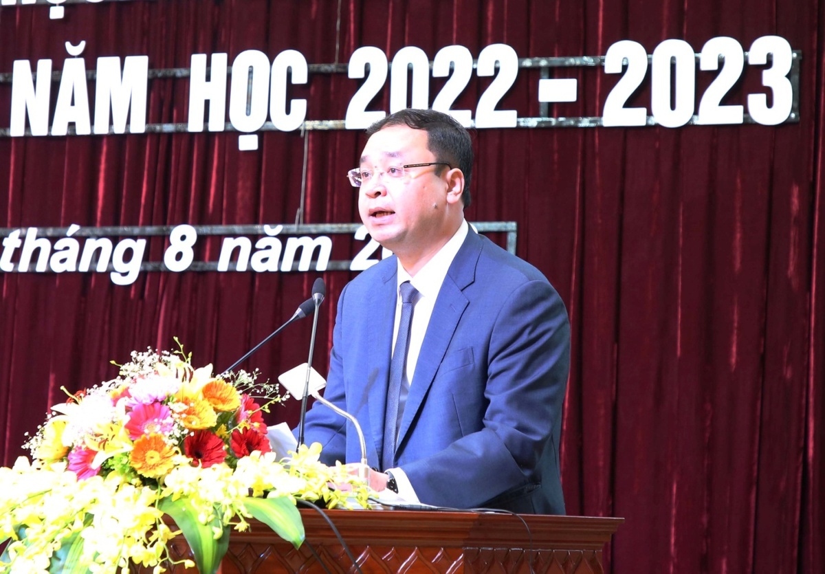 Ông Nguyễn Thế Sơn, Giám đốc Sở GD&ĐT phát biểu, triển khai nhiệm vụ năm học 2022 - 2023.