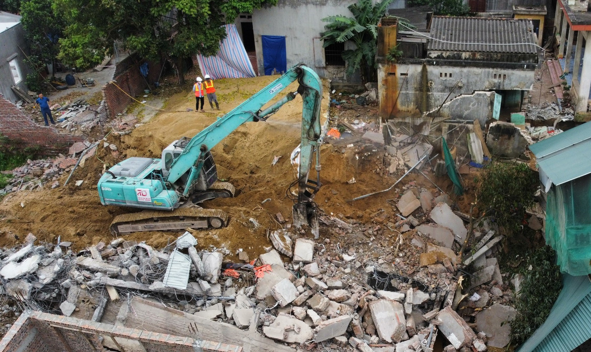 Lực lượng chức năng tập trung tháo dỡ nhà sụt lún.