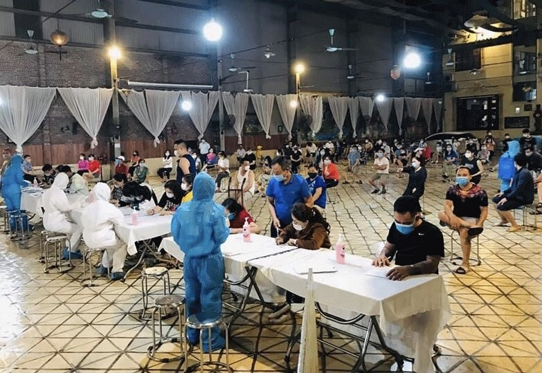 Lực lượng chức năng tỉnh Bắc Ninh phối hợp với Công ty TNHH Samsung Electronics Việt Nam tổ chức xét nghiệm cho các công nhân trong đêm 11/5.
