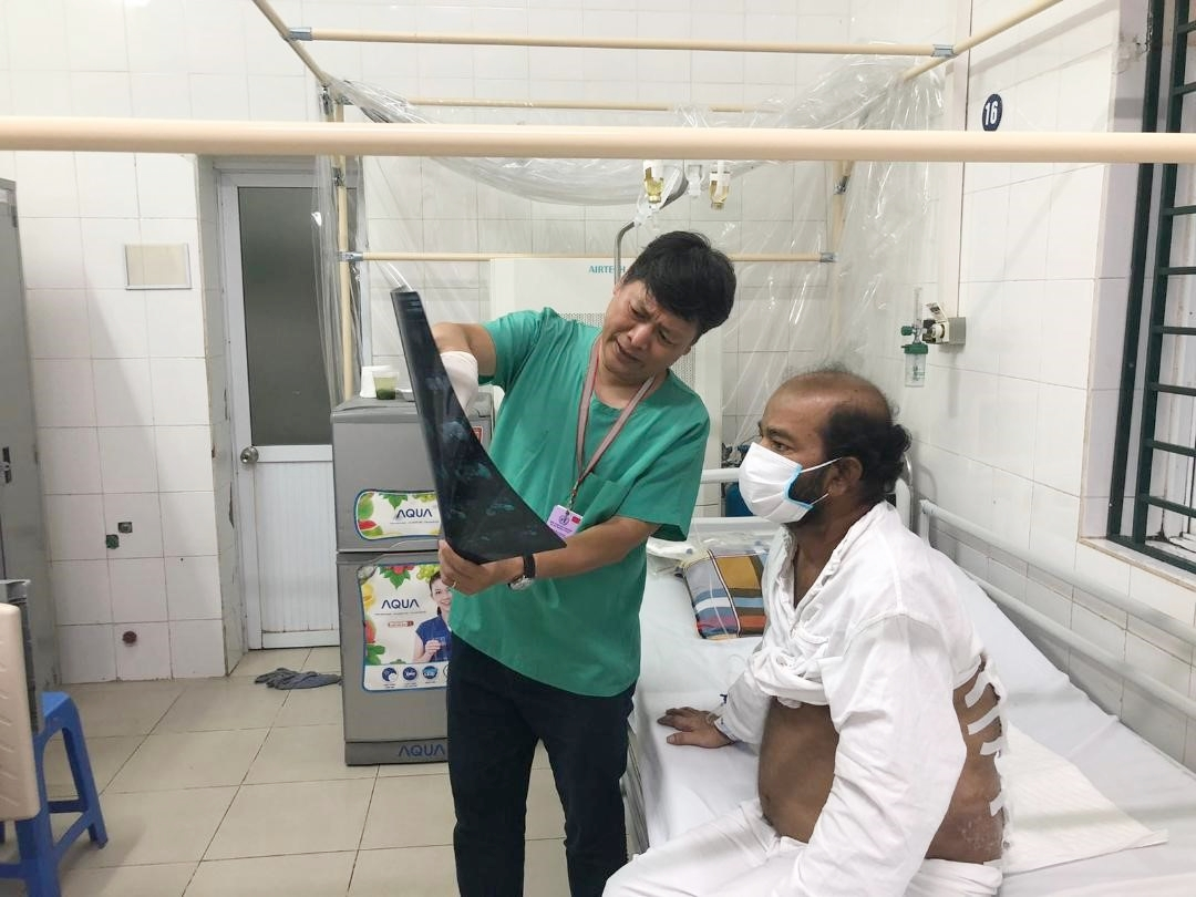 Bệnh nhân quốc tịch Sri Lanka trong quá trình điều trị bệnh than tại Bệnh viện Hữu nghị Việt Đức.
