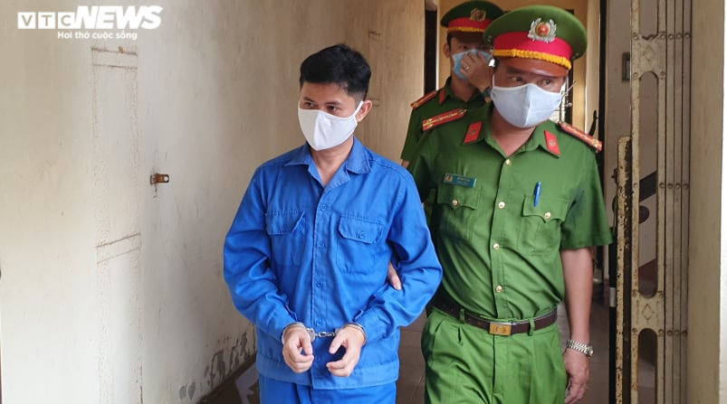 Bị cáo Lê Quang Huy Phương được lực lượng công an dẫn giải ra phòng xử án. (Ảnh: Nguyễn Vương).