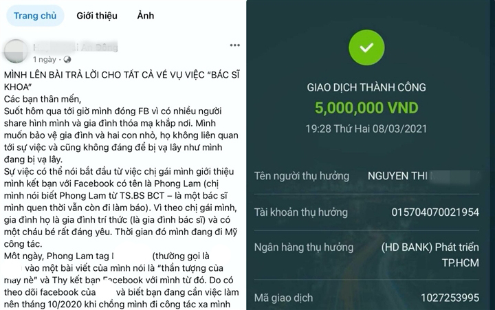 Theo ghi nhận của PV VTC News, Hiện tài khoản Facebook của T. đã khoá, người này chuyên “gom tiền” từ thiện liên quan đến nhóm “bác sĩ Khoa” và “nhà 82” với số tài khoản ngân hàng 015704070021954.