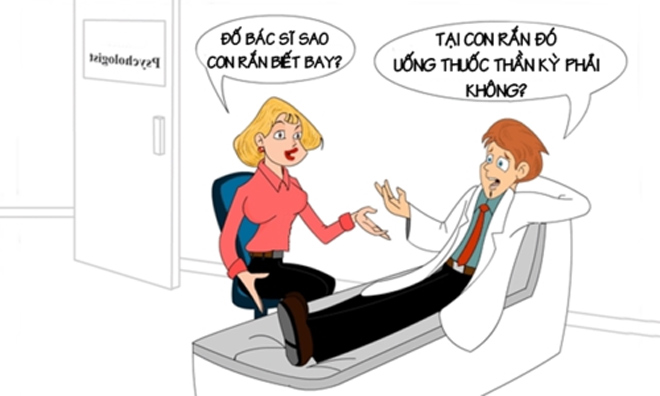 Bệnh nhân nghe thấy thế liền ôm bụng cười ngặt nghẽo: