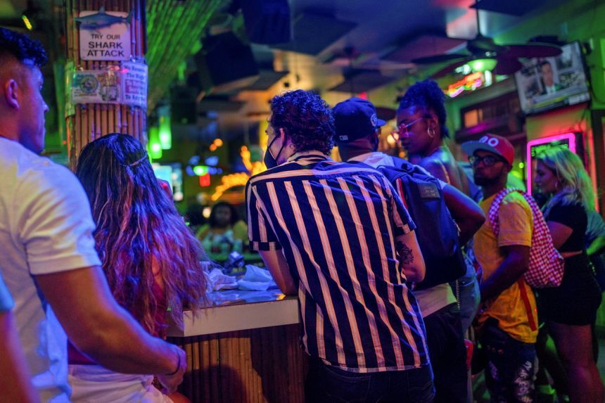 Những người đeo khẩu trang và không đeo khẩu trang trong một quán bar ở Louisiana, tháng 7, 2021. (Ảnh: Reuters)