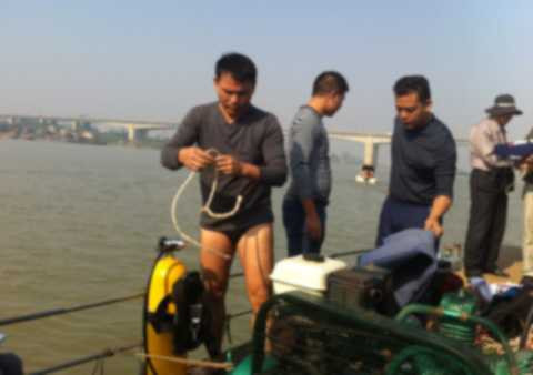 Hôm qua, Viện nghiên cứu nước đã lấy mẫu nước tại 20 điểm trên sông Hồng đoạn qua cầu Thanh Trì và đã xác định được 5 điểm có dấu hiệu theo thể phân hủy. Vì thế, sáng nay đội thợ lặn đang tìm tại 5 điểm nghi vấn này.
