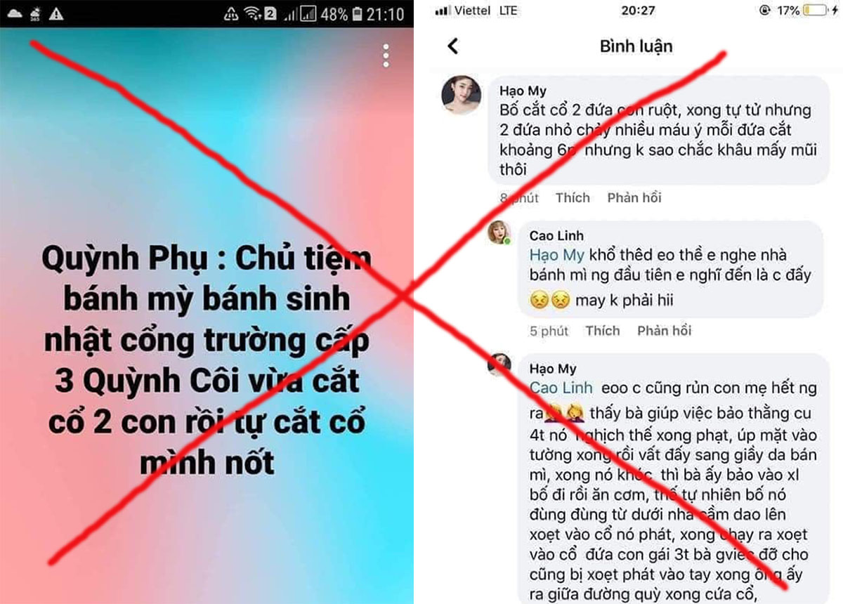Tối 21/1, mạng xã hội facebook lan truyền thông tin người đàn ông cầm dao cắt cổ 2 con rồi chạy ra đường định tự sát nhưng được mọi người can ngăn. Sự việc xảy ra tại khu vực gần cổng Trường THPT Quỳnh Côi, thuộc thị trấn Quỳnh Côi (Quỳnh Phụ, Thái Bình).