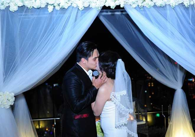 Sau khi trao nhẫn, Baggio nồng nàn khóa môi vợ mới cưới của mình. Đây là khoảnh khắc mà cặp trai tài gái sắc chờ đợi bấy lâu nay.