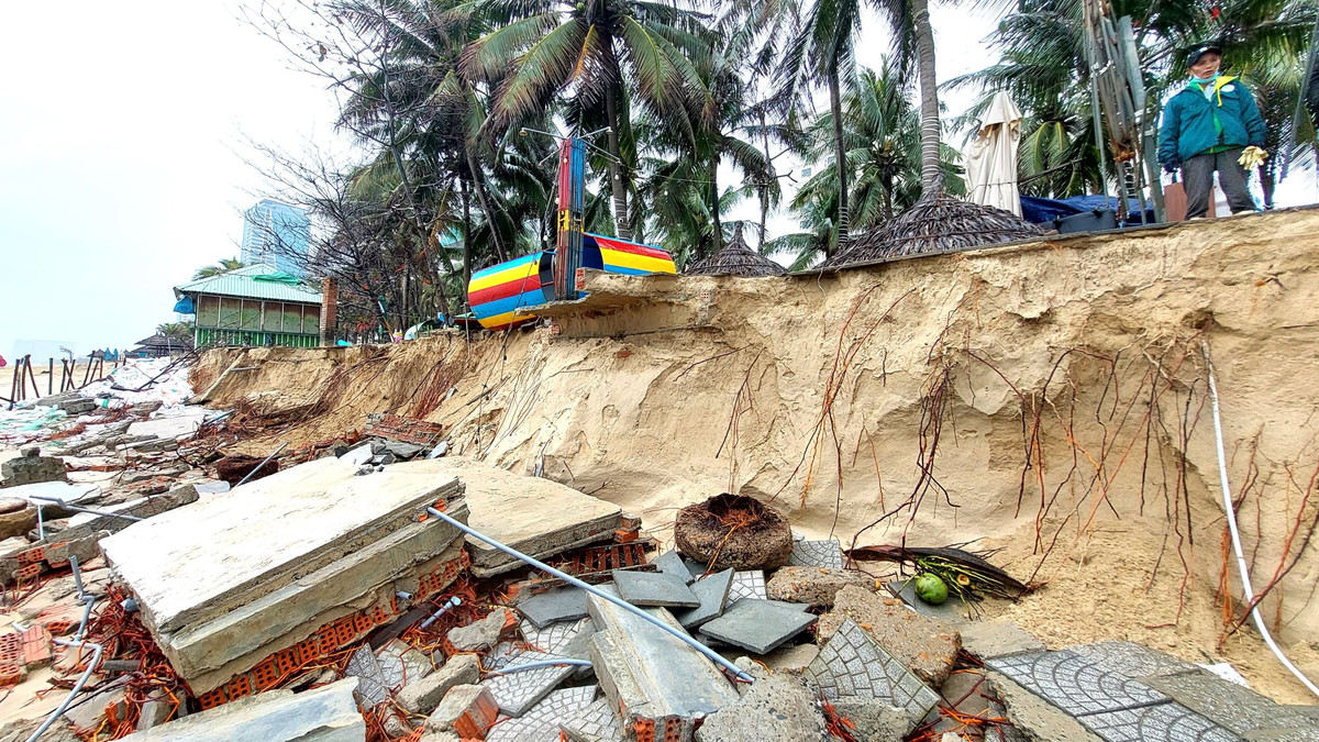 100m bờ biển Đà Nẵng bị sóng đánh tan hoang.