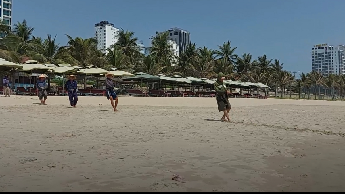 Bãi biển Đà Nẵng vắng bóng người, ngư dân tranh thủ kéo lưới
