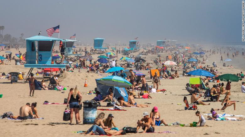 Bãi biển ở Nam California chật kín người giữa mùa dịch COVID-19. (Ảnh: CNN)
