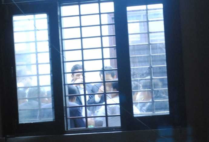 | Hình ảnh các cán bộ đang nhậu ở hội trường UBND xã Quảng Thành được PV chụp từ phía sau cửa sổ lúc 18h40 |