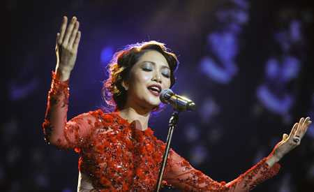 | Ca sĩ Phạm Thu Hà trên sân khấu Bài hát yêu thích |