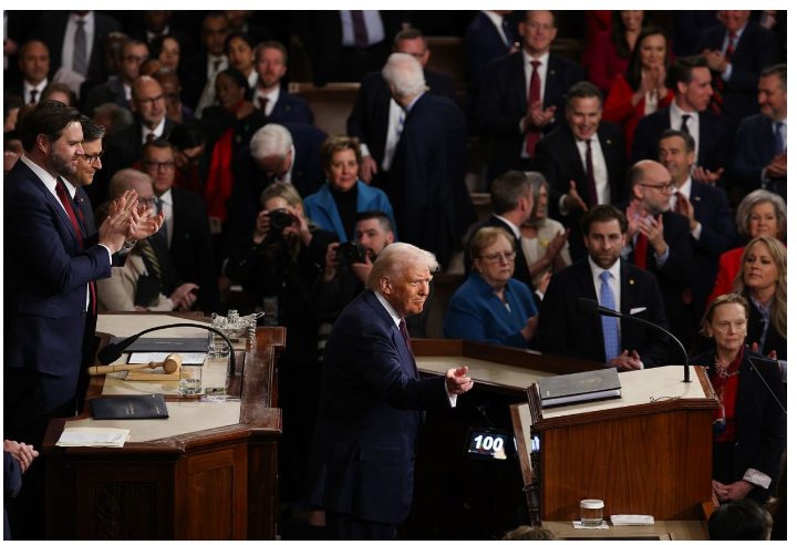 Vị tổng thống thứ 47 của Mỹ bắt đầu bài phát biểu bằng những tiếng hô vang “Hoa Kỳ! Hoa Kỳ!” và nói về 43 ngày đầu tiên của chính quyền ông, được đánh dấu bằng nỗ lực lớn trong việc tái định hình và thu hẹp quy mô chính phủ liên bang do tỷ phú Elon Musk lãnh đạo, những bất đồng với các đồng minh của Mỹ và những bất ổn kinh tế do các mức thuế quan mới gây ra.