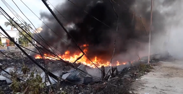 Ít phút sau đó, ngọn lửa lan nhanh bao trùm toàn bộ bãi phế liệu.