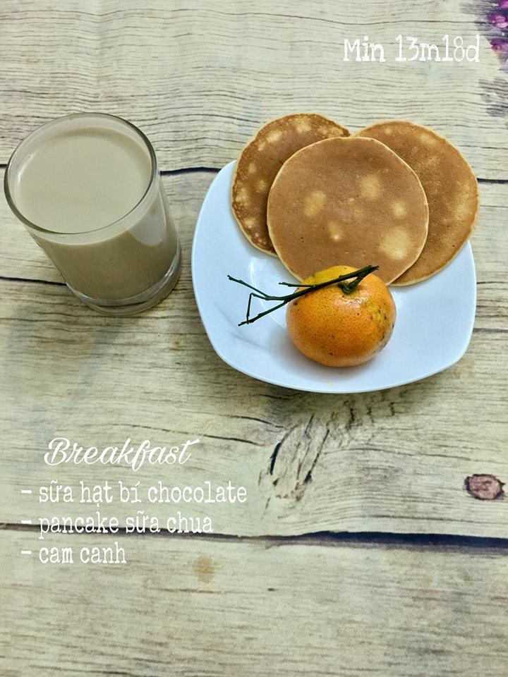 Sữa hạt bí chocolate + Pancake sữa chua