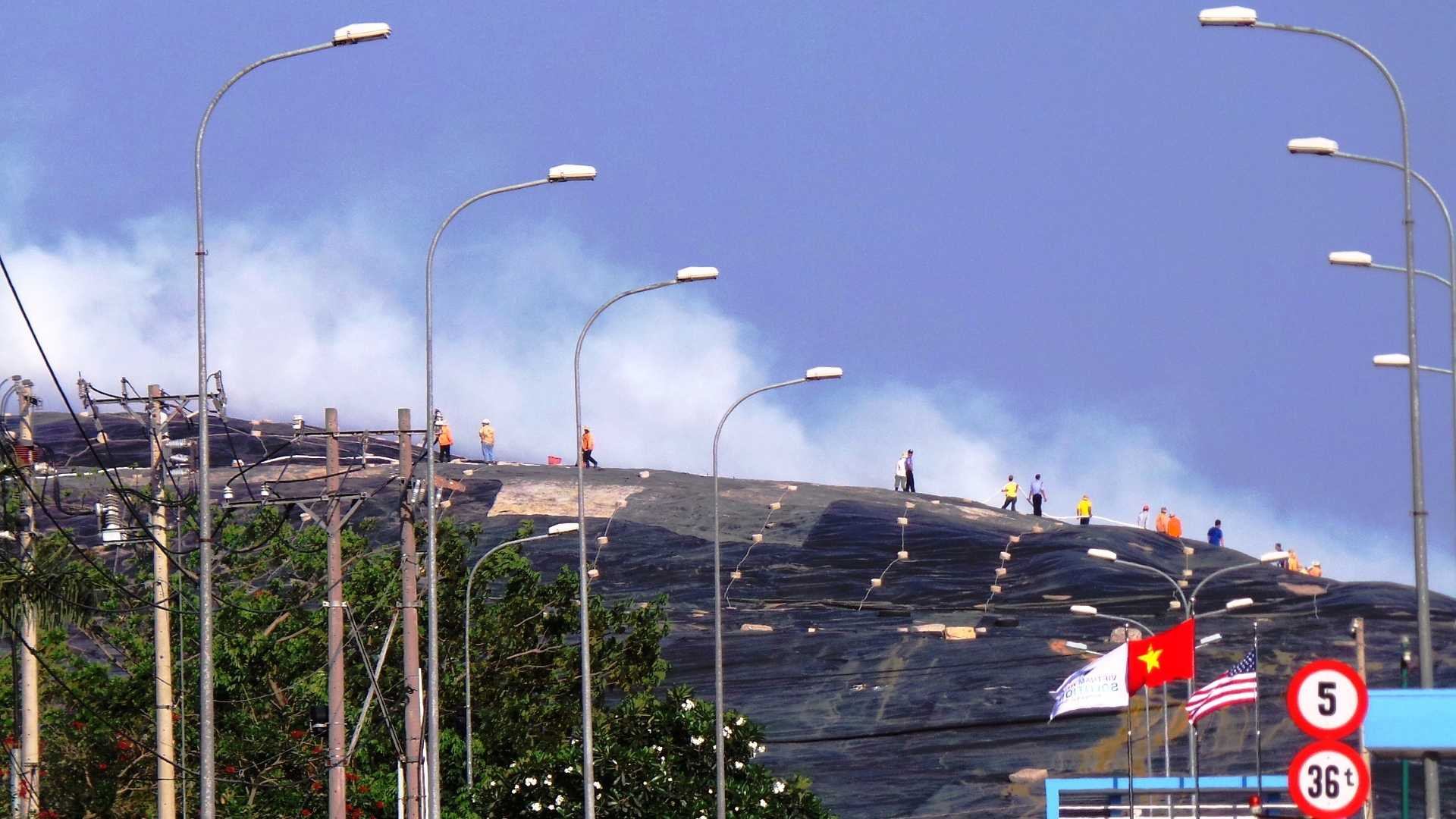 Lực lượng PCCC huyện Bình Chánh nhanh chóng điều hàng nhiều chiến sĩ cùng xe cứu hỏa đến hiện trường. Do “núi” rác quá rộng lớn, nên lực lượng chữa cháy chưa thể ngăn đám cháy mà chỉ thực hiện việc xịt nước cô lập khu vực hỏa hoạn tránh lây lan.