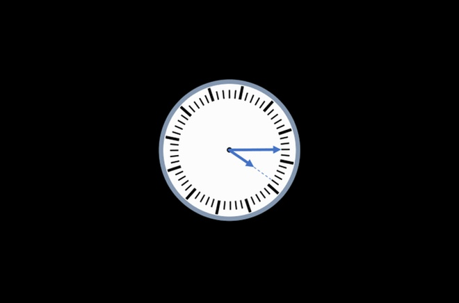 Một chiếc đồng hồ không có số hiển thị, bị xoay lệch vị trí. Dựa vào vị trí của kim giờ và kim phút, bạn hãy xác định đồng hồ đang điểm vào khoảng thời gian nào?