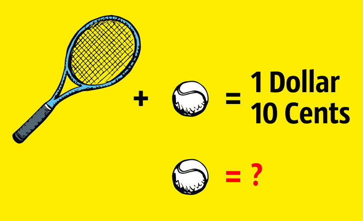 Một trong số những câu hỏi được đưa ra như sau: "1 cây vợt tennis và một quả bóng có giá tổng thể là 1 đô la 10 xu. Biết rằng giá chiếc vợt đắt hơn giá quả bóng 1 đô la. Hỏi quả bóng giá bao nhiêu?