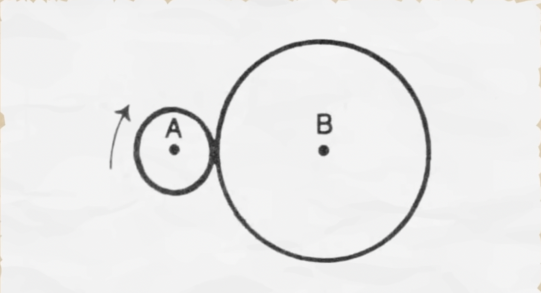 Câu hỏi như sau: "Bán kính hình tròn B gấp 3 lần bán kính hình tròn A. Nếu hình A lăn xung quanh hình B, nó phải thực hiện bao nhiêu vòng quay để trở lại điểm xuất phát?".