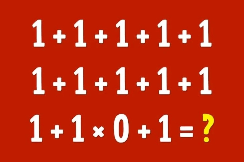 Câu đố có nội dung sau: "Tìm ra đáp án cho phép tính 1+1+1+1+1+1+1+1+1+1+1+1 x 0 +1 = ?".