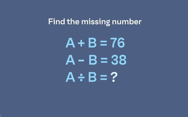 Đề bài như sau: Nếu A + B = 76, A - B = 38. Vậy A ÷ B bằng bao nhiêu?