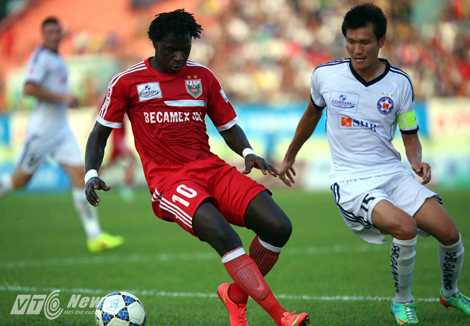 | Abass (đỏ) chơi rất năng nổ (Ảnh: Quang Minh) |