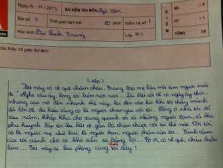 Bài văn viết về cô giúp việc của em Bùi Linh Trang, học sinh lớp 7E1 (Trường THCS Marie Curie) nhận được nhiều lời khen từ cô giáo vì đã có những cảm xúc chân thật, sâu sắc.