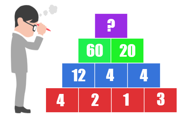 Như thường lệ, bạn phải tìm ra quy luật giữa các số ở đáy kim tự tháp, từ đó tìm ra con số trên đỉnh tương ứng.