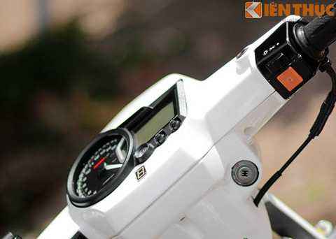 | Trên mặt đồng hồ còn có hệ thống báo số điện tử, ổ khoá nguyên bản xe được thay thế bằng khoá 6 cạnh chống trộm. |