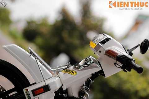 | Dù đi dĩa trước, chiếc Super Dream này vẫn được chủ nhân đi rất gọn khi ứng dụng pen dầu của Honda Vision lên xe, hệ thống thắng dầu được giấu phía sau mặt nạ. |