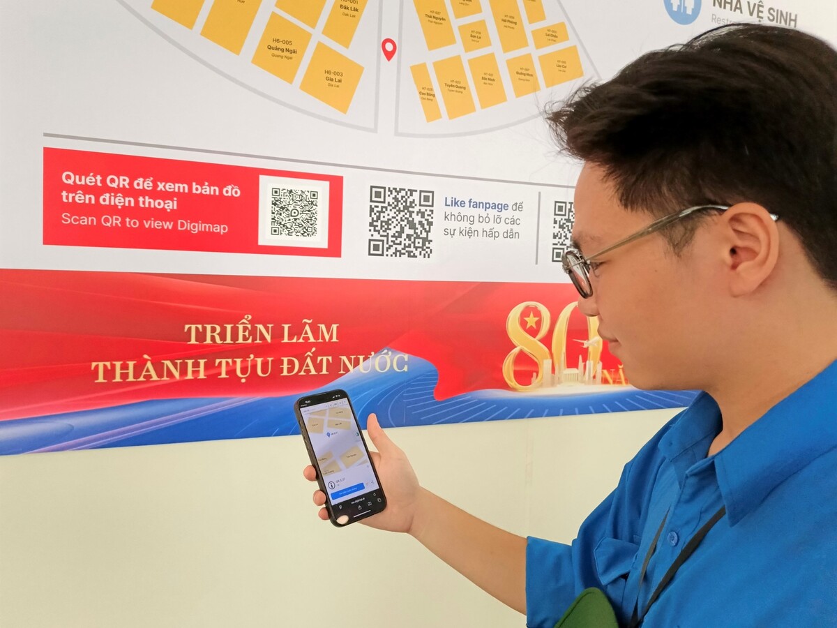 Khi quét mã QR tại các điểm bản đồ từng khu vực, khách tham quan có thể biết vị trí hiện tại. (Ảnh: Mạnh Hùng)