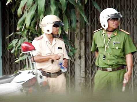 Cảnh sát ở TP. HCM đeo kính đen khi làm việc. Ảnh: Đăng Lê.