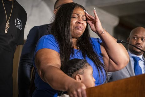Cuộc họp báo hôm 2/6 là lần đầu tiên Roxie Washington phát biểu công khai sau khi bạn trai của cô - George Floyd bị cảnh sát Minneapolis ghì cổ tới chết đầu tuần trước. Roxie xuất hiện cùng luật sư của mình, Stephen Jackson - một người bạn thân của Floyd và cô con gái 6 tuổi.