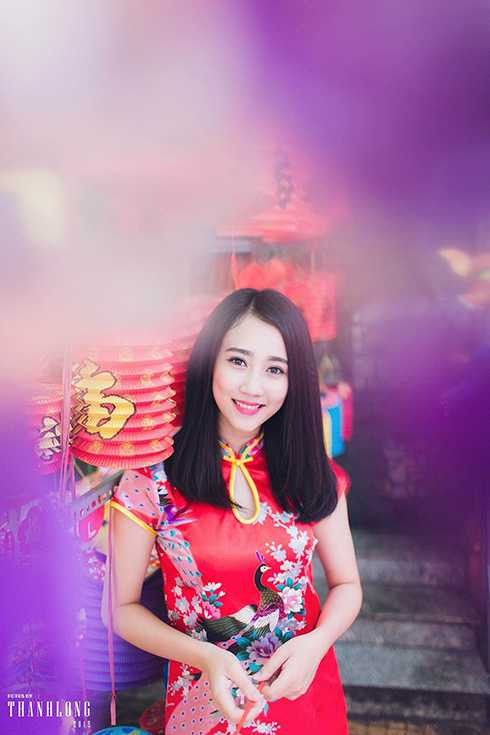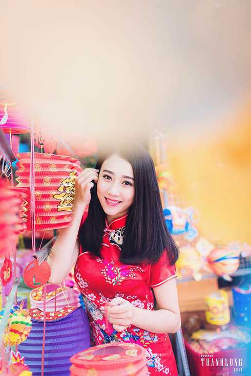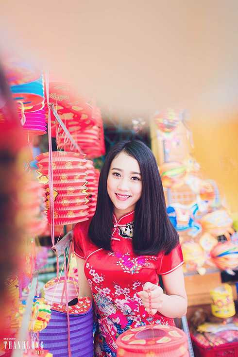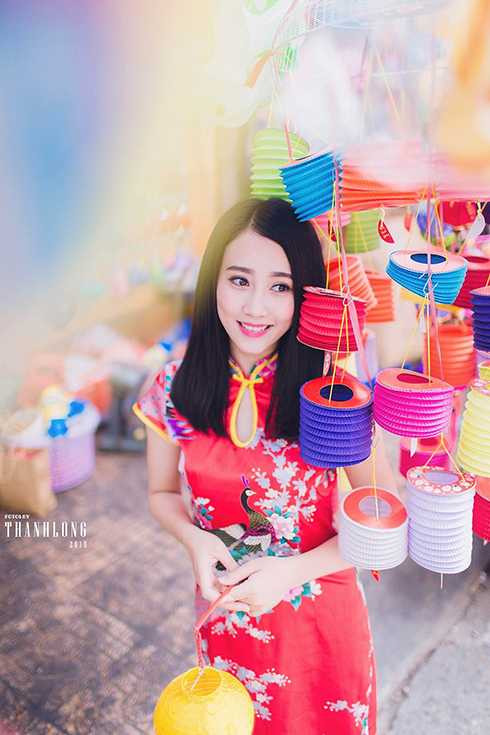 Cô gái xinh đẹp này lựa chọn cho mình bộ váy đỏ rực rỡ, dạo chơi trên phố đèn lồng đón Trung Thu khiến bao chàng trai phải ngắm nhìn.